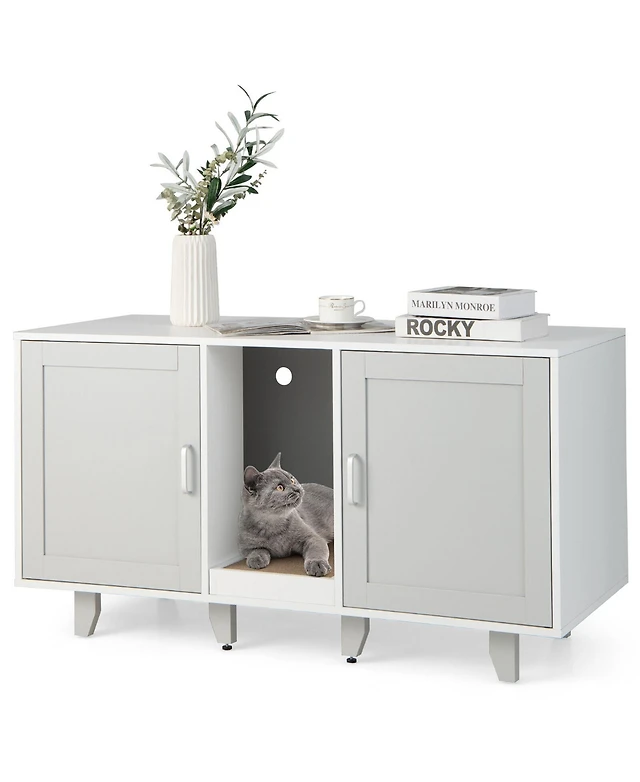 Zeus & Ruta Wooden Cat Litter Box Enclosure Hidden Litter Box Furniture for 2 Cats Modern Pet Cabinet