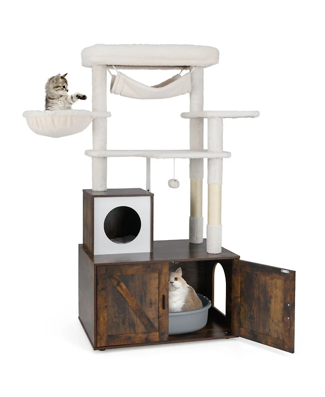 Gymax 59 inch Cat Tree w/ Litter Box Enclosure w/ Hidden Washroom Scratching Posts