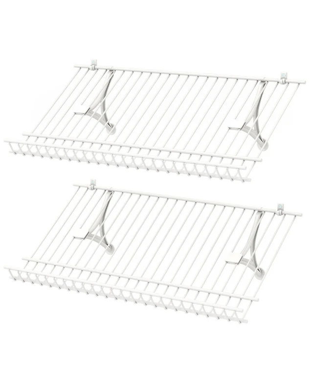 Yigii 2-Tier Desktop Hutch Bookshelf Metal Grid Panel Storage Organizer