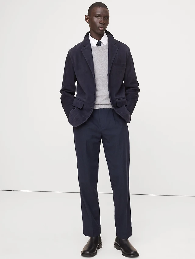 High-Rise Modern Straight Italian Lightweight Wool Pant