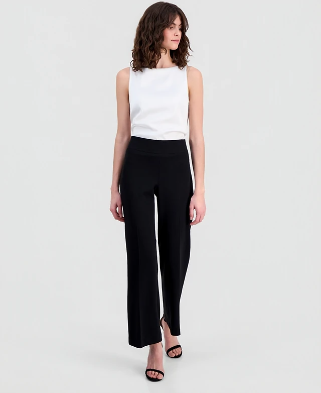Dkny Petite Solid Fixed-Waist Slant-Pocket Wide-Leg Pants, Created for Macy's