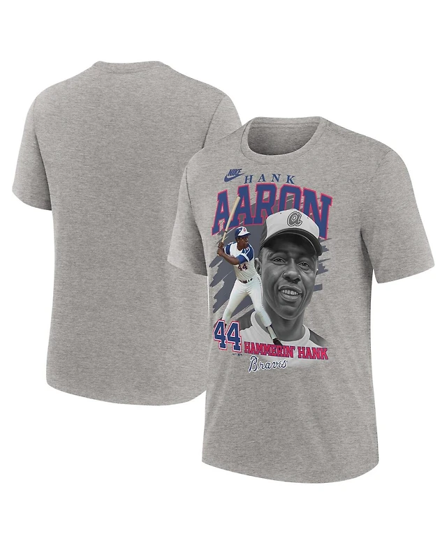 Nike Men's Hank Aaron Heather Gray Atlanta Braves Cooperstown Collection Player Local T-Shirt