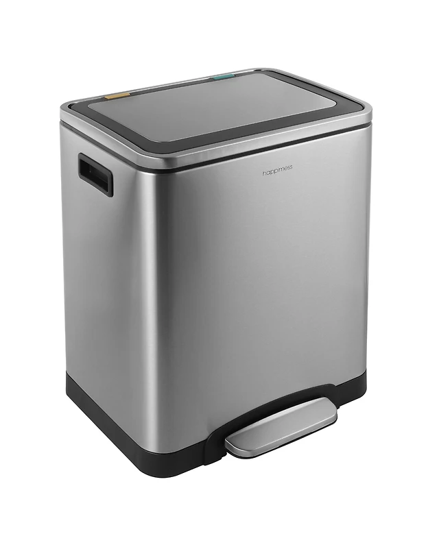 Rectangular Stainless-Steel-Made Matt Black Recycle Step-on Trash Can with Dual 30 liter + Compartments for Kitchen
