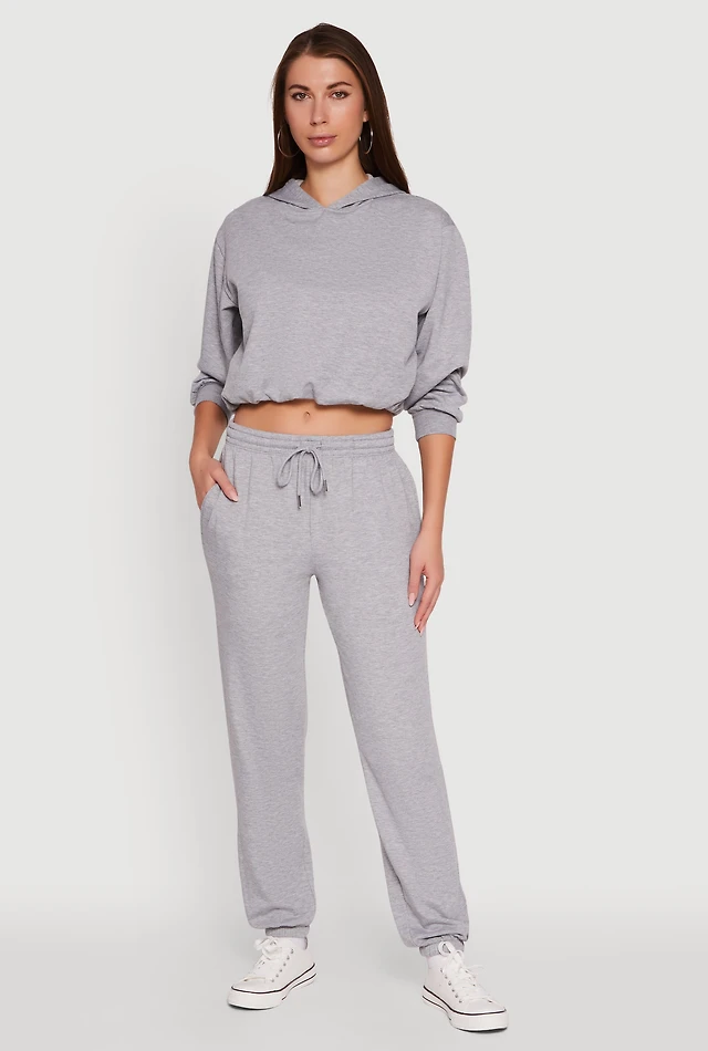 Mid Rise Drawstring Waist Fleece Sweatpants