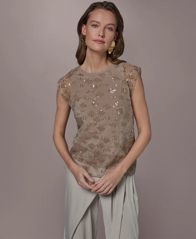 Tahari Asl Women's Lace-Front Short-Sleeve Sweater