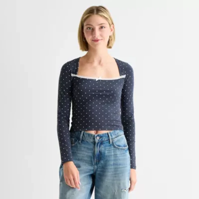 Womens Juniors Crew Neck Short Sleeve Boxy Fit Graphic T-Shirt