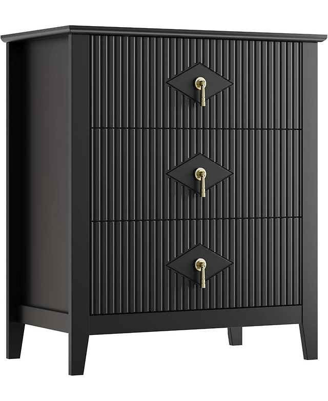 gaomon Fluted Dresser for Bedroom 27.5" Wide, 3-Drawer Wood Nightstand Bedroom, Modern Chest of Drawers