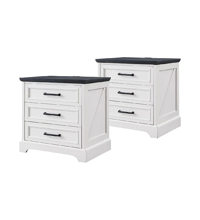 gaomon Farmhouse Nightstand Set of 2 with Charging Station,Rustic Wood Small Dresser, Off White