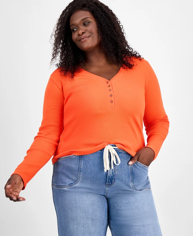 Style & Co Women's Long Sleeve Button-Trim Striped Knit Top, Macy's Exclusive
