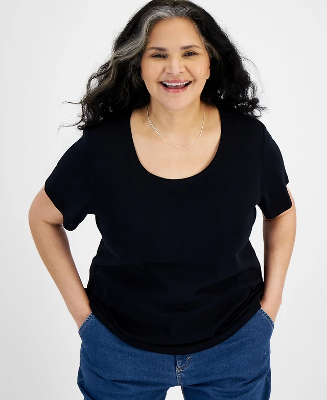 Style & Co Plus Stripe Pima Cotton 3/4-Sleeve Top, Exclusively at Macy's