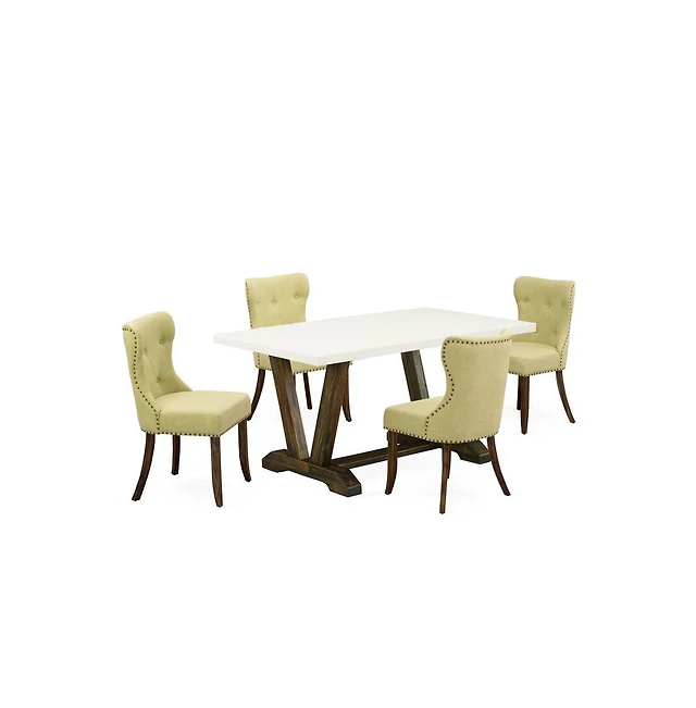 East West Furniture 5-Piece Modern Dining Room Set an Excellent Distressed Jacobean Dining Table Top and 4 Attractive Linen Fabric Parson Chairs with