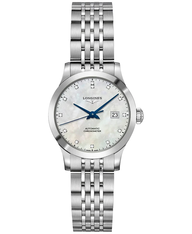 Longines Women's Swiss Automatic Record Collection Diamond-Accent Stainless Steel Bracelet Watch 30mm