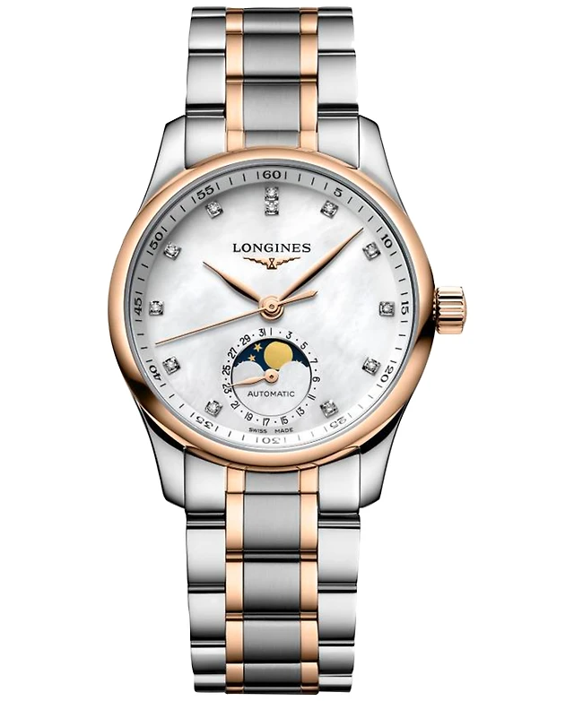 Longines Women's Swiss Automatic Master Moonphase Diamond (1/20 ct. t.w.) Stainless Steel Bracelet Watch 34mm