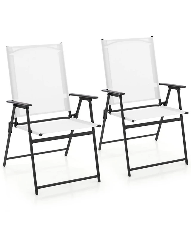 Slickblue Set of 2 Patio Folding Sling Chairs Space-saving Dining Chair-Grey