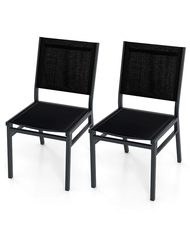 Yaheetech Set of 2 Outdoor Texteline Folding Dining Chairs with Backrest/ Armrests Gray