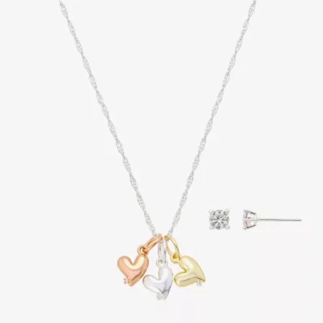 Womens White Sterling Silver Heart 18 Inch Pendant Necklace