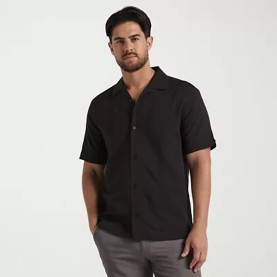 St. John's Bay Slub Mens Short Sleeve Classic Fit Big and Tall Button-Down Shirt