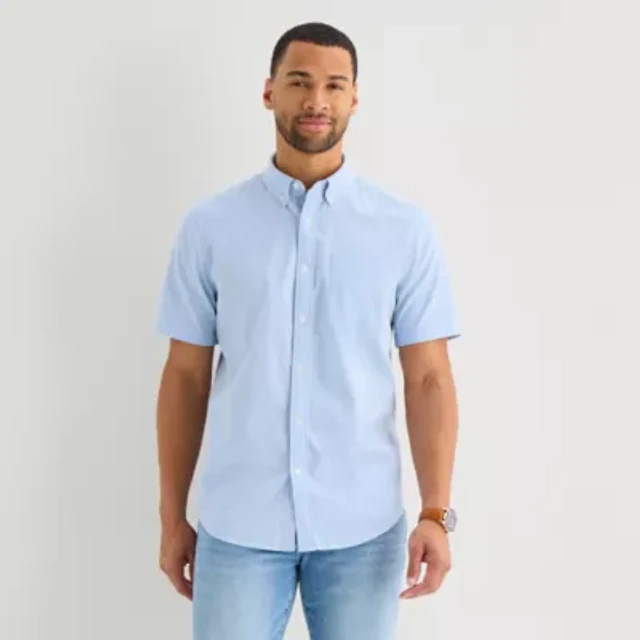 St. John's Bay Slub Mens Short Sleeve Classic Fit Button-Down Shirt