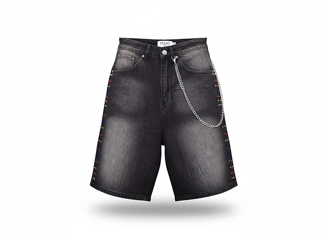RARE DNM EDIT Light Blue Rhinestone Trim High Waisted Denim Festival Shorts