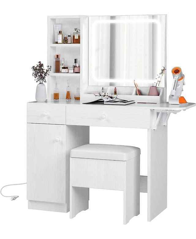Vlsrka 3-in-1 Vanity Desk with Led Sensor Light, Flip Mirror and Drawers