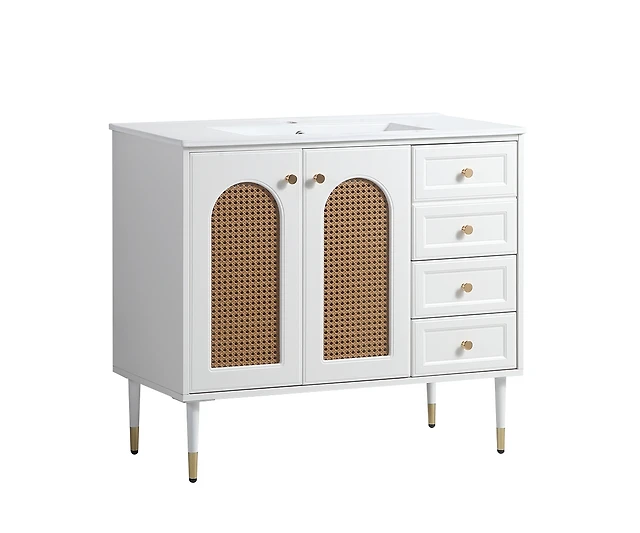 Streamdale 36" Bathroom Vanity with Sink, 2 Doors, 4 Drawers (White, 35.8"W x 19.7"D x 35.4"H)