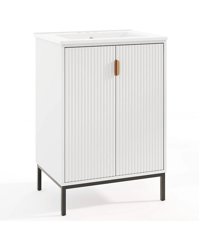 Casainc 24" Modern Bathroom Vanity with Ceramic Sink, Solid Wood Frame & Open Shelf