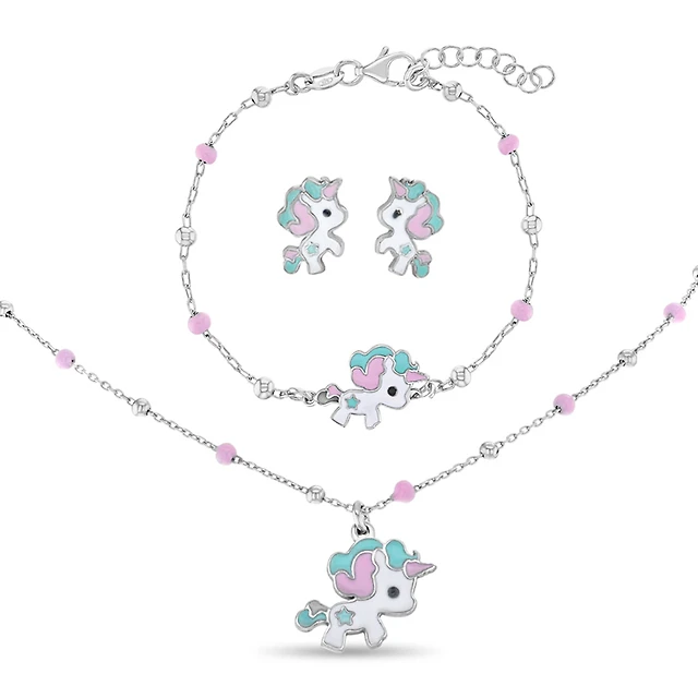 Puff Mariner and Colored Stones Necklace and Bracelet Jewelry Set