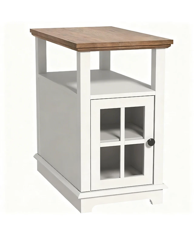 Mid-century Modern Mitch End Table with Storage and Built-In Outlets