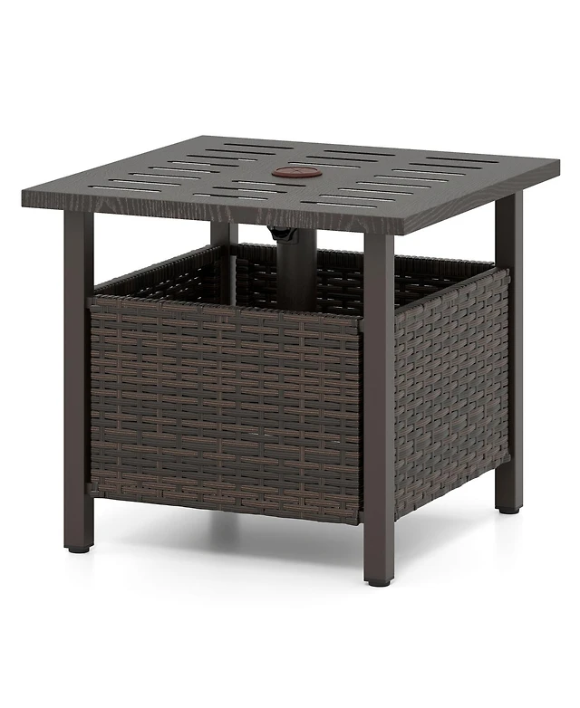 sumyeg Outdoor Pe Wicker Side Table with Umbrella Hole