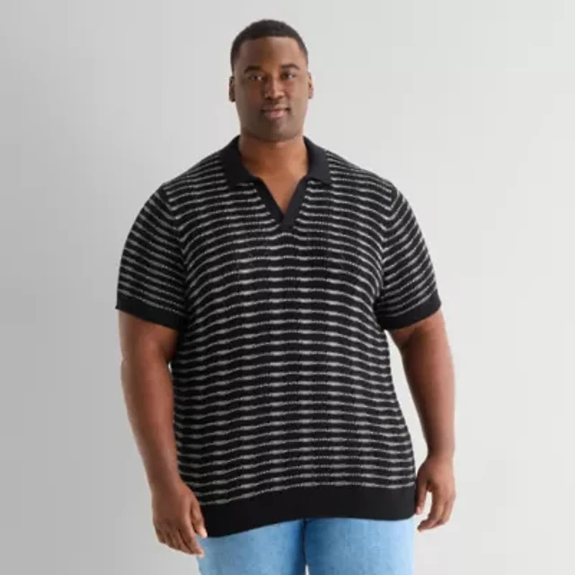 Haggar Linen Blend Retro Stripe Mens Short Sleeve Button Polo Sweater