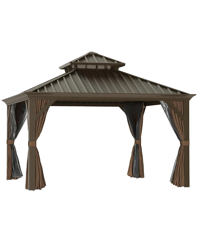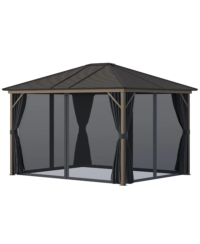 Outsunny 10' x 12' Hardtop Patio Gazebo, Netting Curtains,