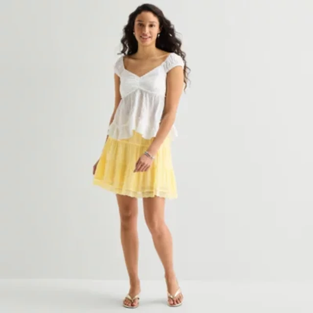 Crinkle Gauze Ruffle Waist Mini Skort
