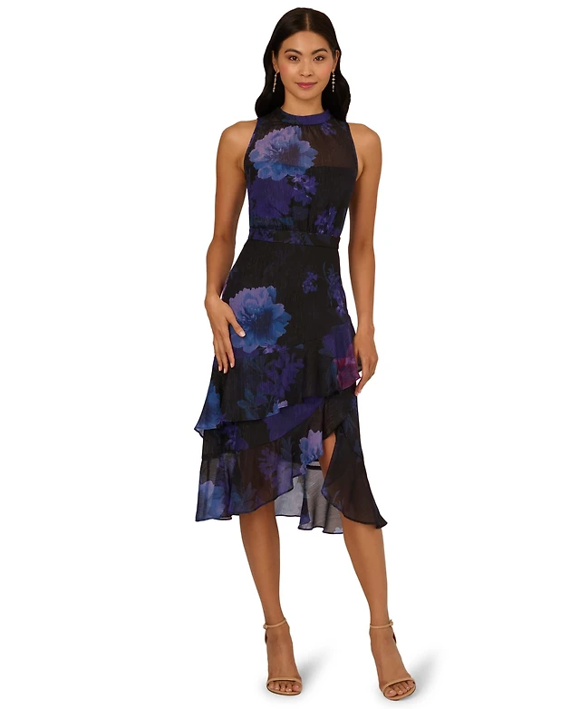 Adrianna Papell Women's Halter Glitter Midi Dress