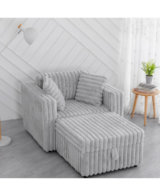Streamdale Furniture 99" Corduroy Sectional Sofa with Chaise & 3 Pillows