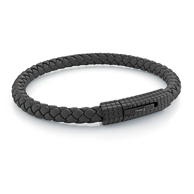 Black Leather, Cord and Steel Bracelet