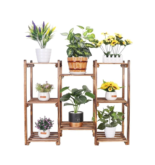 6 Tier Garden Wooden Shelf Storage Plant Rack Stand