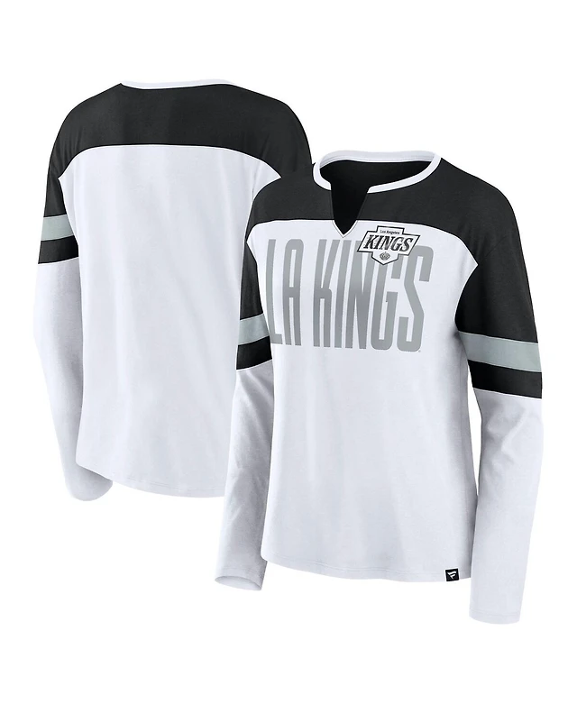 Fanatics Women's White/Black Los Angeles Kings Frozen Long Sleeve Notch Neck T-Shirt