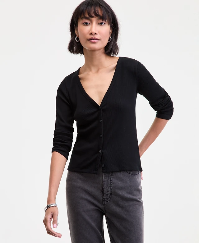 Bcx Juniors Spread-Collar Button-Front Cardigan Sweater