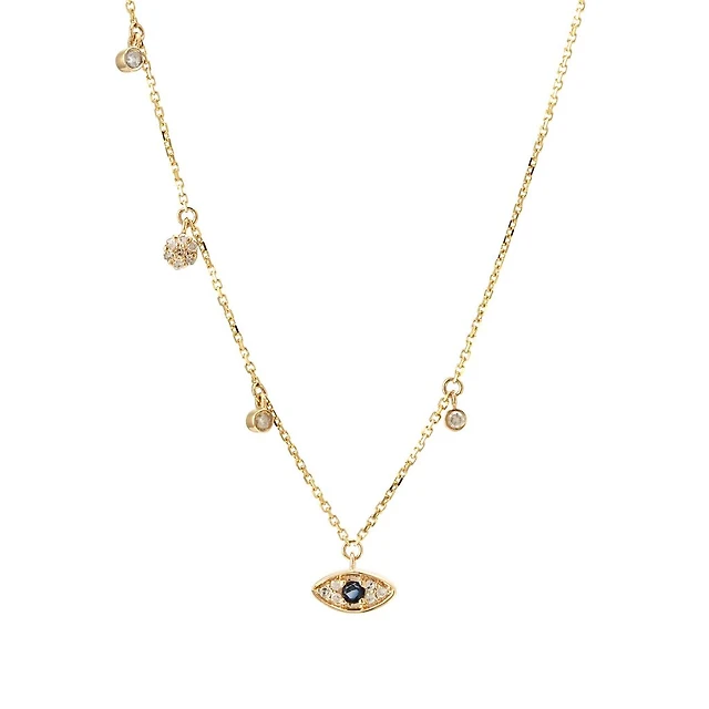 Gold and Diamond Medium Heart Marquise Eye Neckalace