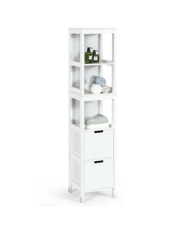 Basicwise White Tall Standing Bathroom Linen Tower Storage Cabinet for Bathroom and Vanity