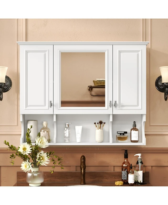 Airsurfer 35 x 28 Wall Mounted Bathroom Storage Cabinet Medicine Cabinet Modern Bathroom Wall Cabinet with Mirror and 6 Open Shelves Not Include Vanit