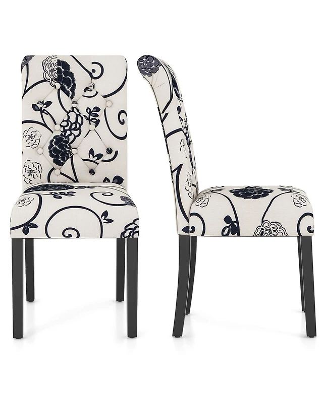 Set of 2 Tufted Dining Chair Parsons Upholstered Fabric Chair with Wooden Legs