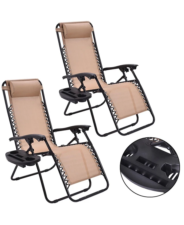 Costway 2-Pack Folding Backpack Beach Chair Table Set 5-Position Outdoor Reclining
