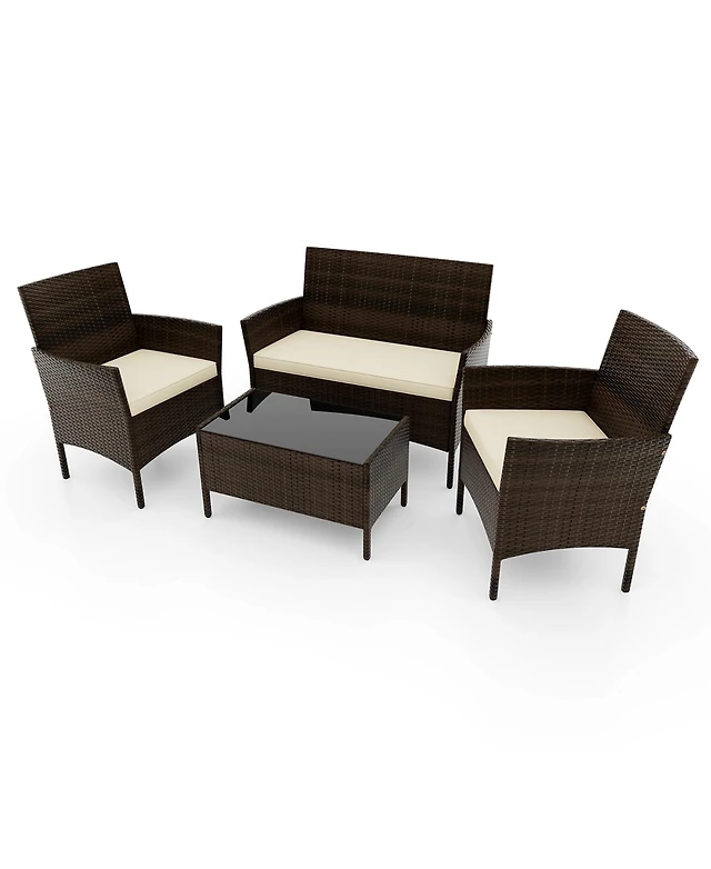 Sugift 4 Pieces Patio Wicker Furniture Conversation Sets with Coffee Table and Cushions