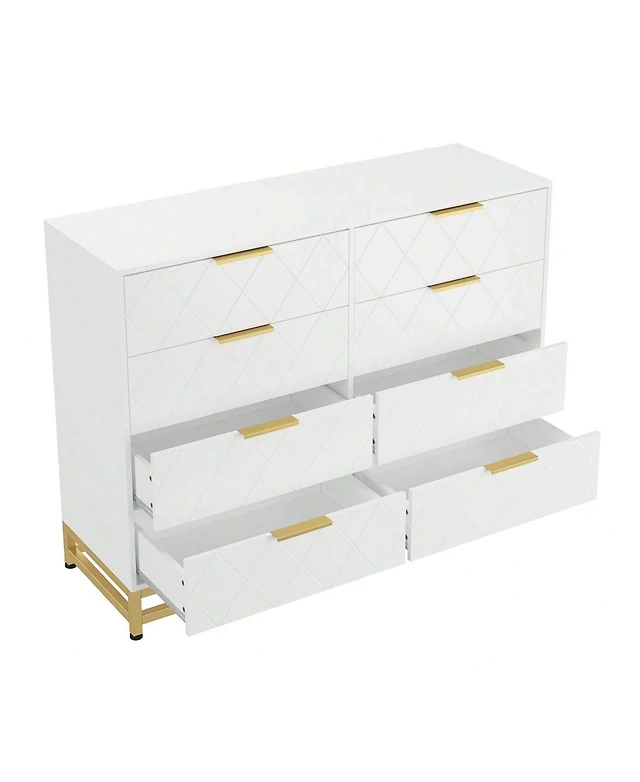 Gaomon 8-Drawer Wood Dresser with Gold Handles, Modern Chest of Drawers for Bedroom, Living Room or Closet Storage