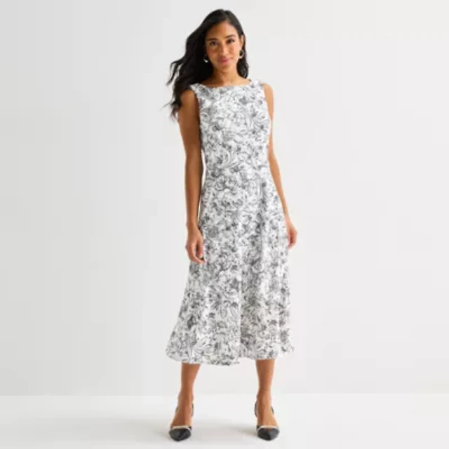 Robbie Bee Womens Sleeveless Floral Shift Dress
