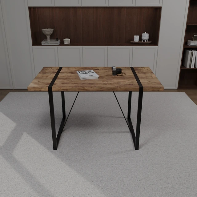 Streamdale Furniture Modern Dining Table with Wooden Top & Iron Legs (Seats 6-8)