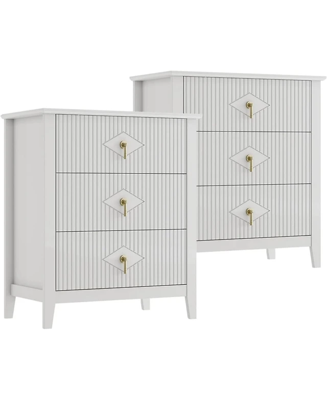 LuxenHome Mid-Century Modern Wave 2-Drawers End Table and Nightstand with Metal Legs