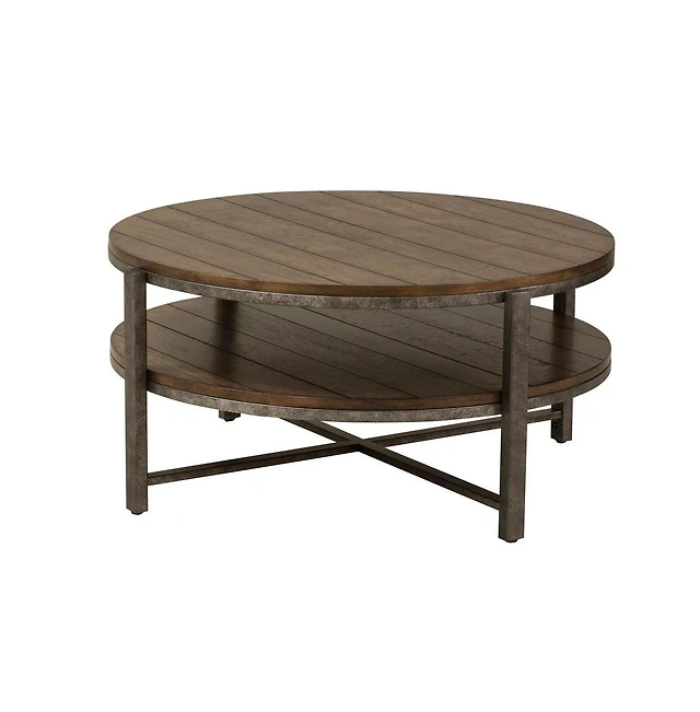 Lovmor Round Coffee Table with Starburst Veneer Top, Reclaimed Greige Wood Finish, Modern Living Room Design