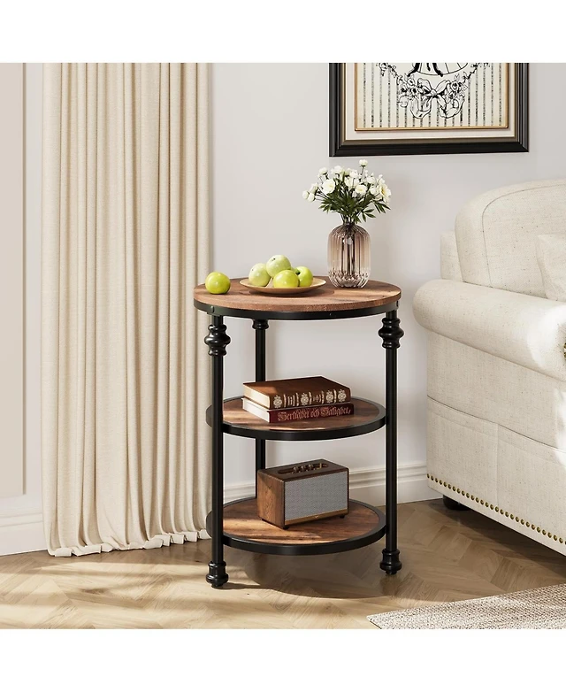 Streamdale Furniture 21.5" x 24" Round Side Table With Wood Top, End Table for Living Room Bedroom